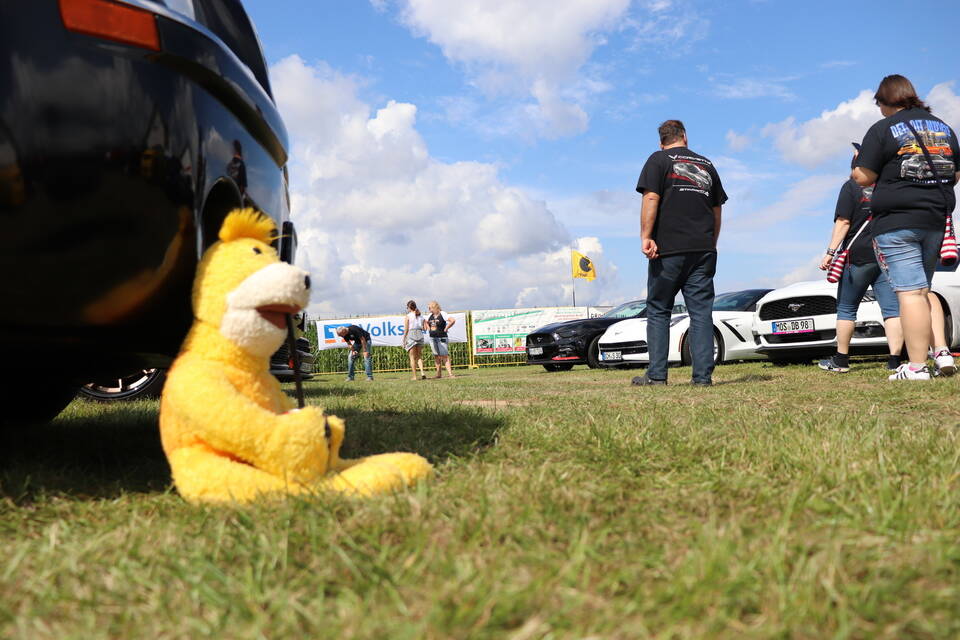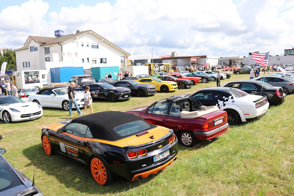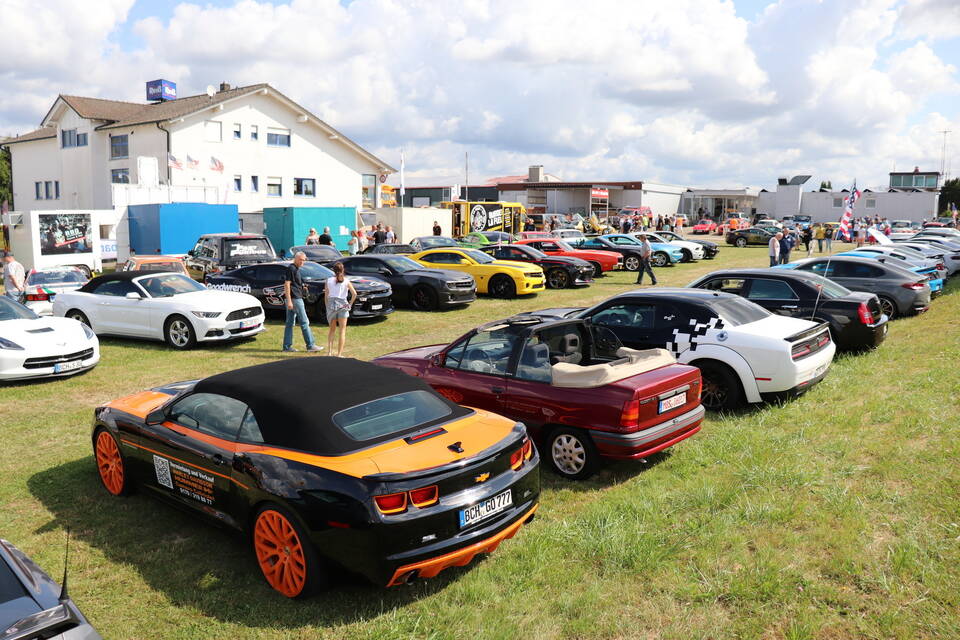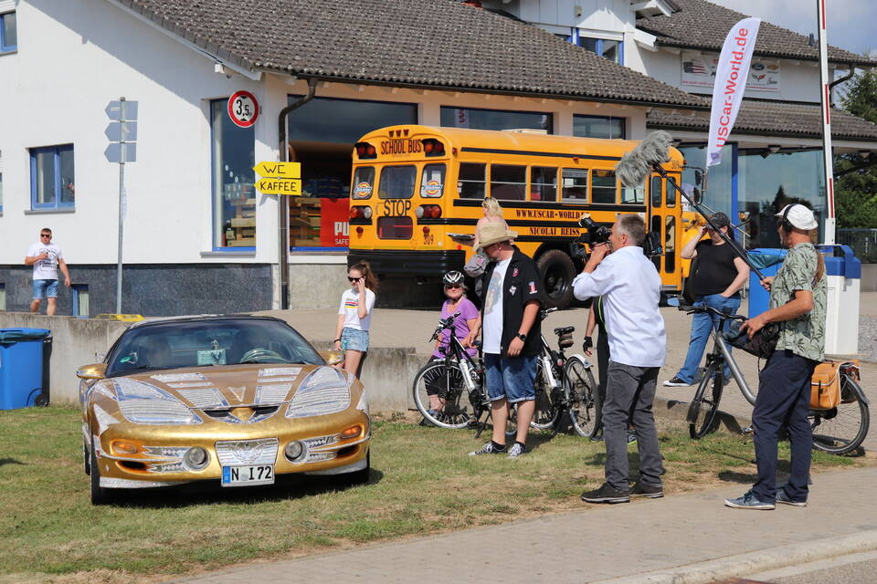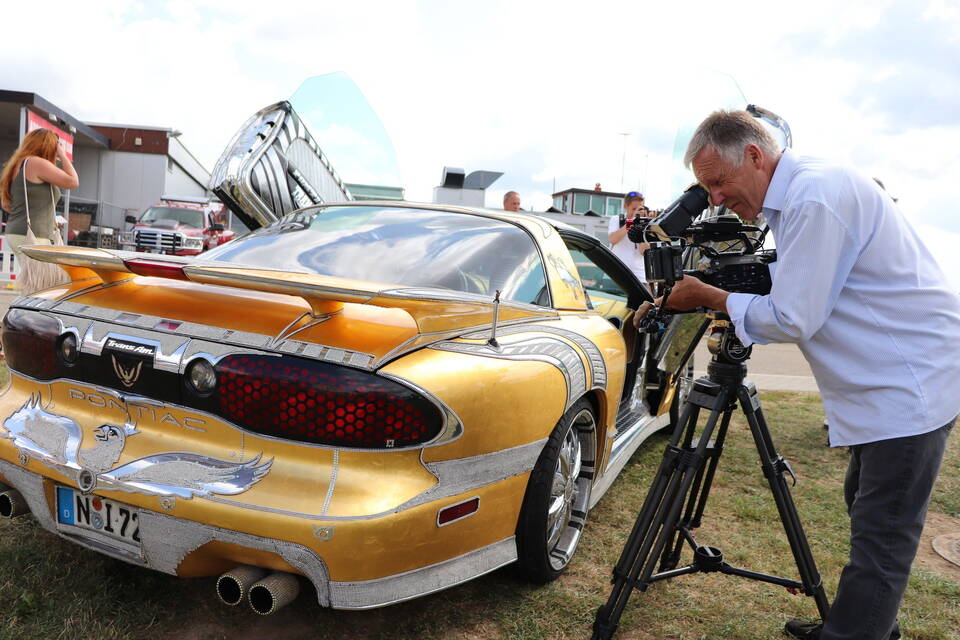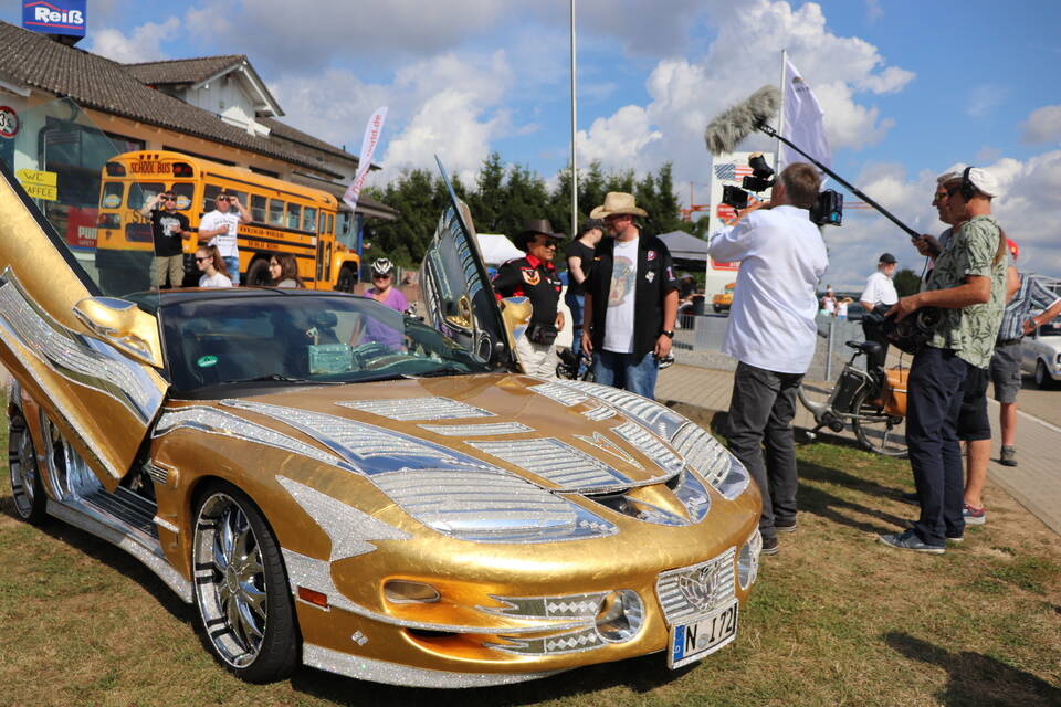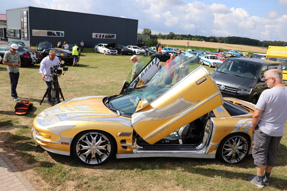 Besonderen Glanz verlieh der Pontiac Trans Am von Ali Naeemi dem Treffen, das der Autoclub in Kooperation mit "US Car World", "US Custom Boutique Reiß" und der Mosbacher Beatband "The Bautzy’s" stemmt. Der 400 PS starke Achtzylinder des Nürnbergers ist nämlich mit 400.000 Swarovski-Diamanten besetzt und drumherum statt mit ordinärem Lack mit Blattgold überzogen. Glamouröser geht’s kaum, zumal Naeemi dem 2004 aus den USA importierten Trans Am auch noch Flügeltüren verpasst hat.