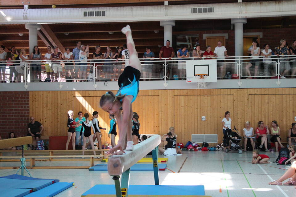 Dann war es so weit: Die Wettkämpfe begannen. Sie wurden entweder als Gerätewettkampf, Gymnastikwettkampf oder gemischter Wettkampf ausgefochten. Bei dem gemischten Wettkampf absolvierten die Kinder zwei leichtathletische Disziplinen wie 50-Meter-Sprint, Ballwurf oder Weitsprung auf dem Sportplatz, während sie in der Sporthalle der Schule Am Limes ihr Können beim Geräteturnen, Sprung, Reck, Balken oder Bodenturnen zeigen konnten. In der Baulandhalle fanden das Bodenturnen und die Disziplinen in der Gymnastik statt.
