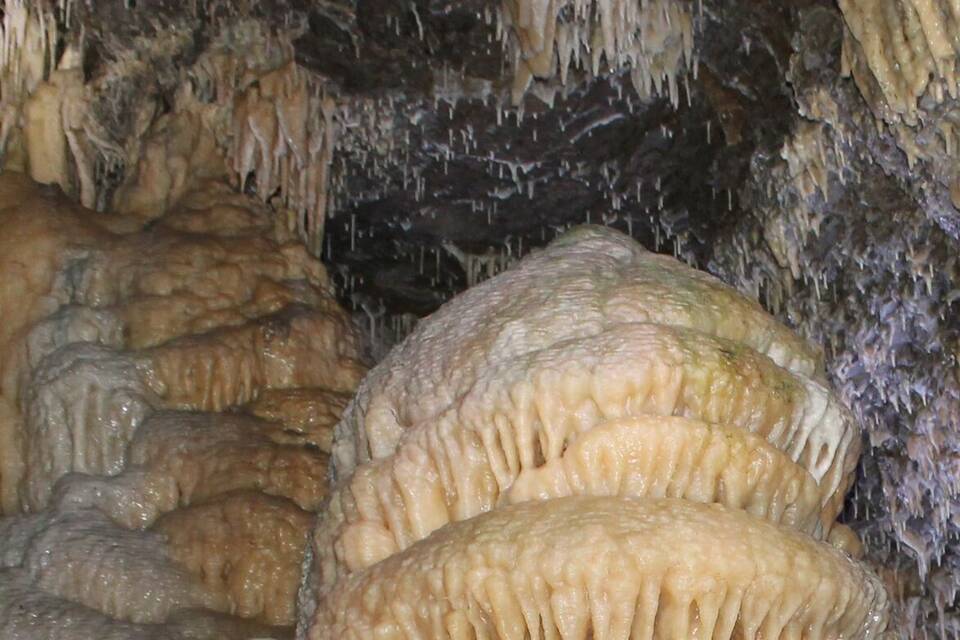 Nach einem Gratisgetränk der Stadt Buchen für alle RNZ-Leser ließ Wolfgang Mackert die Teilnehmer an seinem reichen Wissen über die Höhle teilhaben: Die Tropfsteinhöhle im Buchener Stadtteil Eberstadt ist rund fünf Millionen Jahre alt. Sie verdankt ihre Entdeckung einem Zufall. Am 13. Dezember 1971, also vor 49 Jahren, öffnete sich bei Sprengungen in einem Muschelkalksteinbruch an einer Wand ein circa ein Meter hoher und zwei Meter breiter Spalt. Bereits die ersten vorsichtigen Erkundungen ließen eine geologische Sensation und die atemberaubende Schönheit eines Naturdenkmals erahnen, das einmalig in Süddeutschland ist.