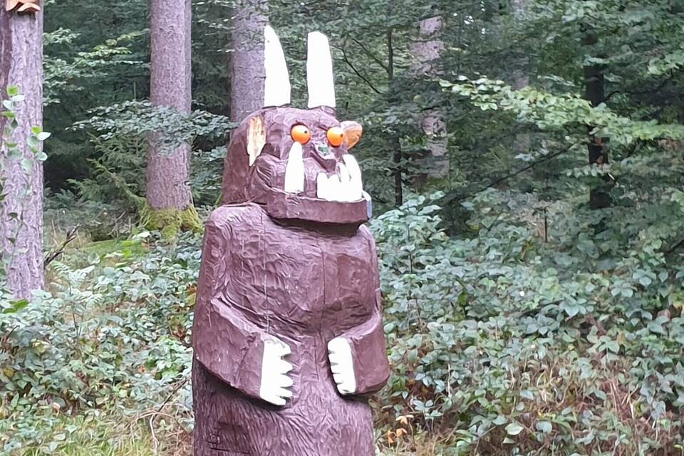 Robern. (kö) Wer auf der Wanderbahn in Höhe von Trienz beziehungsweise dem Bahnhof Robern unterwegs ist, hat ihn sicher schon gesehen: den Grüffelo, den der Heimatverein Fahrenbach mit der Familie Neukirchner aus Robern in der Nähe des Alter-Stein-Brunnens aufgestellt hat.