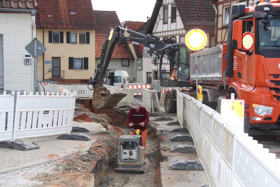 Zudem seien mittlerweile fünf Haltungen in den Hauptkanal eingebaut und die Kanalanschlussleitungen in offener Bauweise erneuert worden. Mit dem Einbau der neuen Wasserleitung bis zur Metzgerei Weber sei ebenfalls begonnen worden. Damit verbunden gewesen sei der Aufbau einer Notversorgung für die betroffenen Wohnhäuser. Diese Arbeiten sollen in rund drei Wochen abgeschlossen sein. Danach beginne die Gehwegsanierung an beiden Straßenseiten.