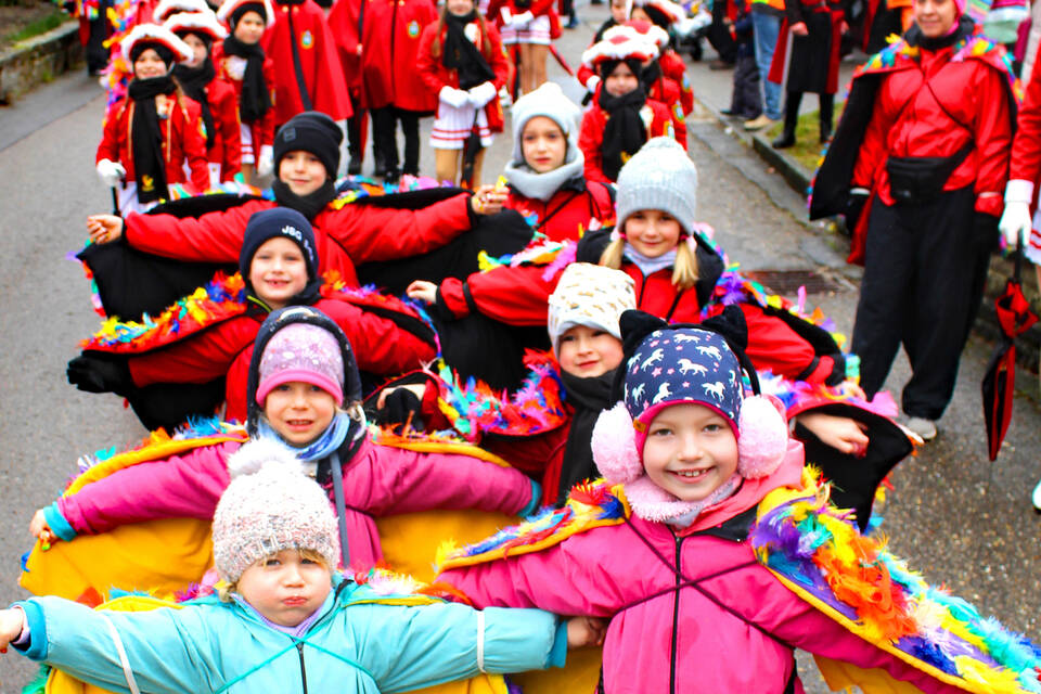Einmal mehr war dabei die jüngste Generation von Narren sehr stark vertreten: Im Publikum war die erste Reihe vielerorts von Kindern besetzt, die auf "Gutsle" hofften; und in der närrischen Prozession selbst begeisterte der Nachwuchs mit bunten Kostümen und – zum Beispiel bei den "Nesthäkchen" oder in der Kindergarde – mit ihrer Freude am Brauchtum.