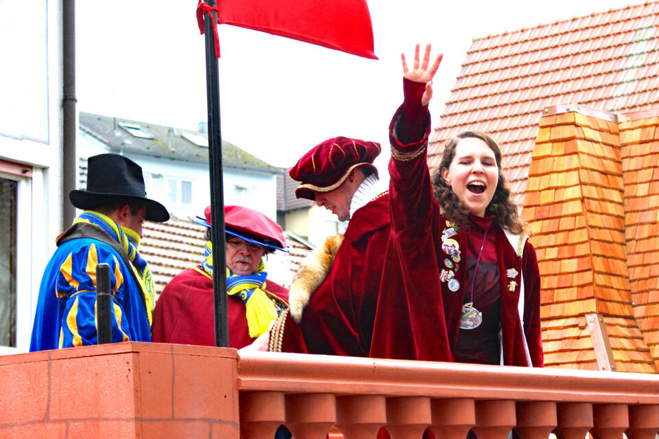 Während die Garden regelmäßig das Tanzbein schwangen, verteilten das Vogelvolk, die Ritter, der Elferrat und das Prinzenpaar fleißig ihre mitgebrachten Leckereien – ob nun Süßes für die Kleinsten oder Flüssiges für die Junggebliebenen.