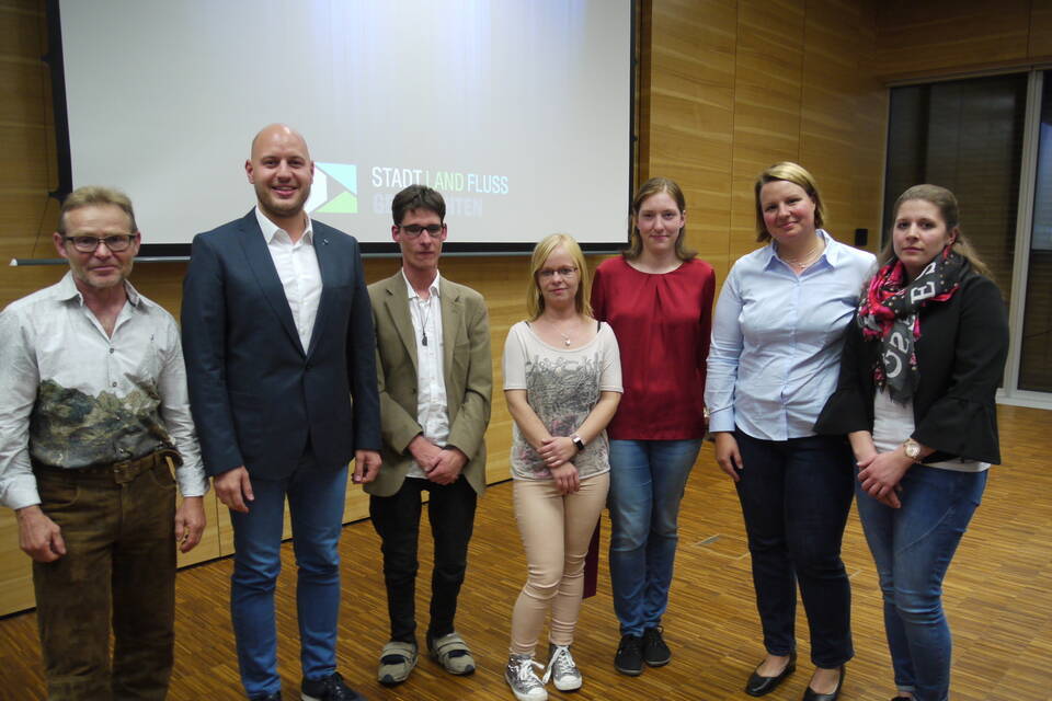 Die sieben Hauptdarsteller(innen): Harald Hannich, Anil Ilerigider, Michael Gänßmantel, Sonja Jonas, Esther Hoffmann, Christine Eggers und Ann-Katrin Zimmermann (v.l.). Foto: Brunhild Wössner