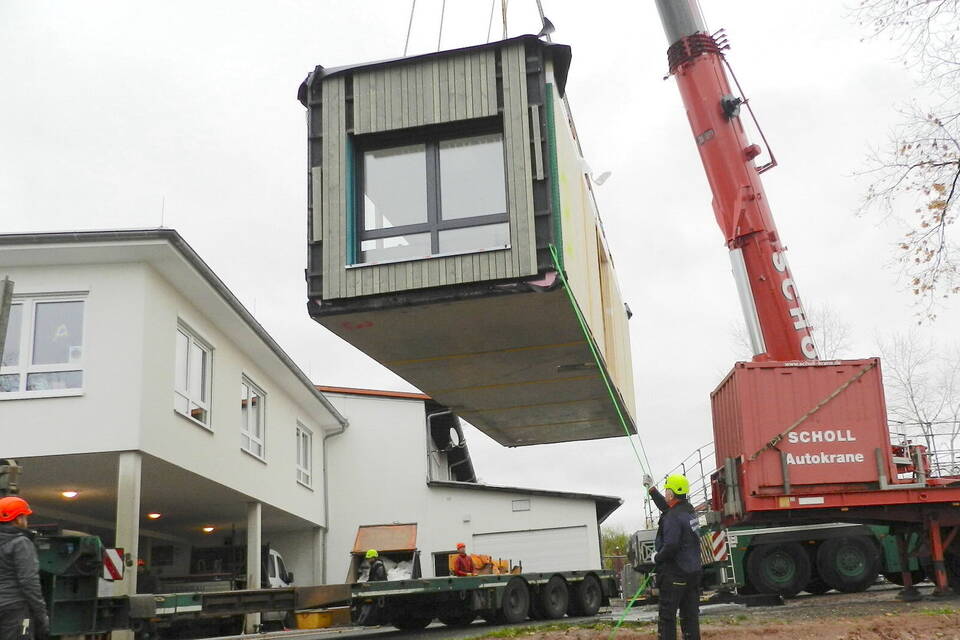 Tonnenschwere Kindergarten-Module schwebten in Haag durch die Luft