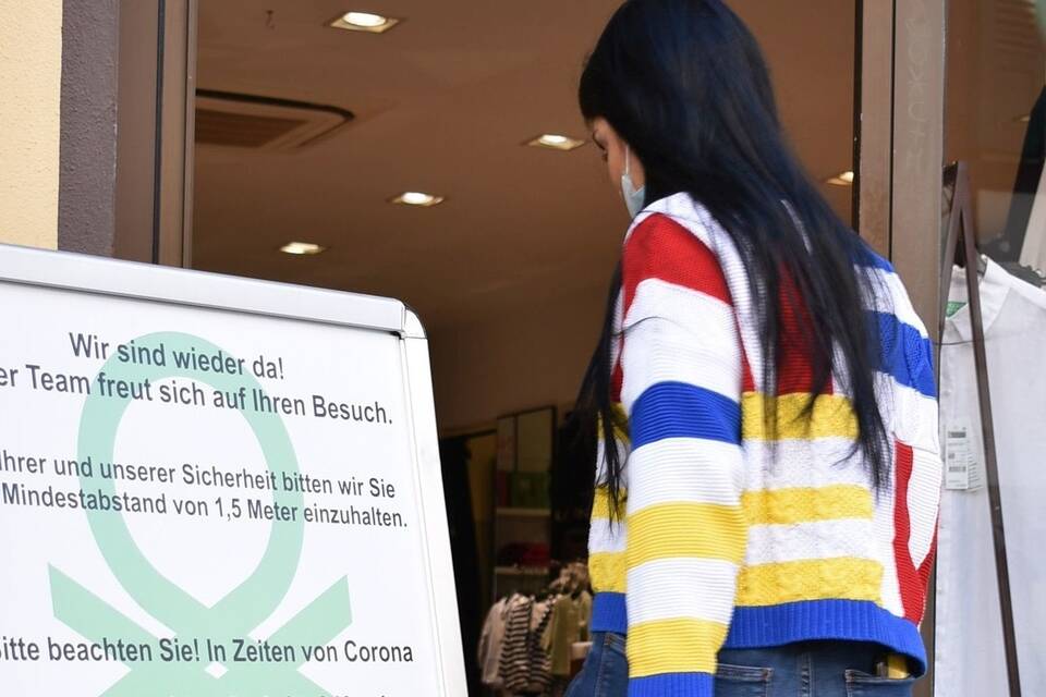 Das machen ein paar Meter weiter am Kirchplatz auch ganz brav die Kunden der "Nadelkiste", die vor dem kleinen Ladengeschäft Abstand und Geduld (be)wahren. Dazu braucht es in diesem Fall noch nicht einmal Markierungen. Wieder ein Stück weiter kommt ein Ehepaar mit zwei vollgepackten Einkaufstaschen aus dem Schuhhaus "Stadler". Schön zu sehen für den neutralen Beobachter, dass das Geschäft zumindest in kleinen Schritten wieder anläuft. Noch schöner dürfte die Erkenntnis, dass man in den harten Wochen der verordneten Schließungen nicht ganz vergessen worden ist, für die Einzelhändler selbst sein.