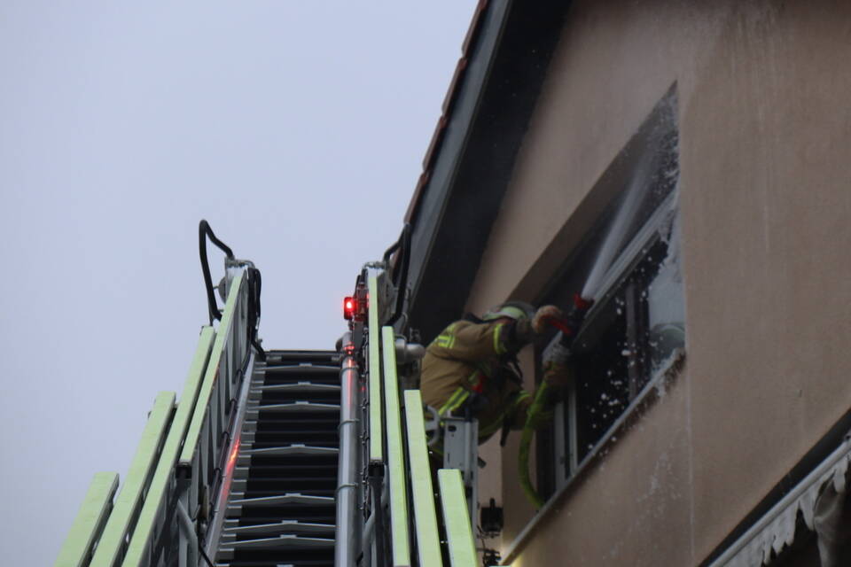 Gegen 14 Uhr brach in einer Dachgeschosswohnung aus bislang unklarer Ursache ein Feuer aus. Als die Feuerwehr ankam, war eine starke Rauchentwicklung aus dem Fenster zu erkennen. Die 33-jährige Bewohnerin konnte sich selbst in Sicherheit bringen und das Haus verlassen, allerdings erlitt sie leichte Verletzungen in Form einer Rauchgasvergiftung und Verbrennungen an den Händen. Fünf weitere Personen, die sich in ihren Wohnungen des Anwesens befanden, wurden von der Feuerwehr ins Freie gebracht.