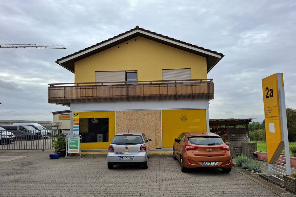 Auto fährt in Fenster der Postfiliale in Malsch