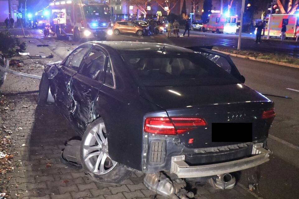 In Mannheim kam es in der Nacht zu einem Unfall, bei dem ein Audi eine rote Ampel missachtete. Alle fünf Insassen wurden leicht verletzt.