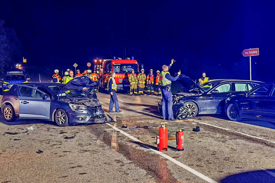 Laut Polizei waren um kurz nach 21.20 Uhr an der Abfahrt in Richtung Heilbronn ein Renault und ein Mercedes kollidiert. Ein nachfolgender VW prallte noch in den Mercedes. Auch der Renault krachte in ein Auto, das gerade von der Autobahn abfuhr. Feuerwehr, Rettungsdienst, Notarzt und Polizei rückten aus.