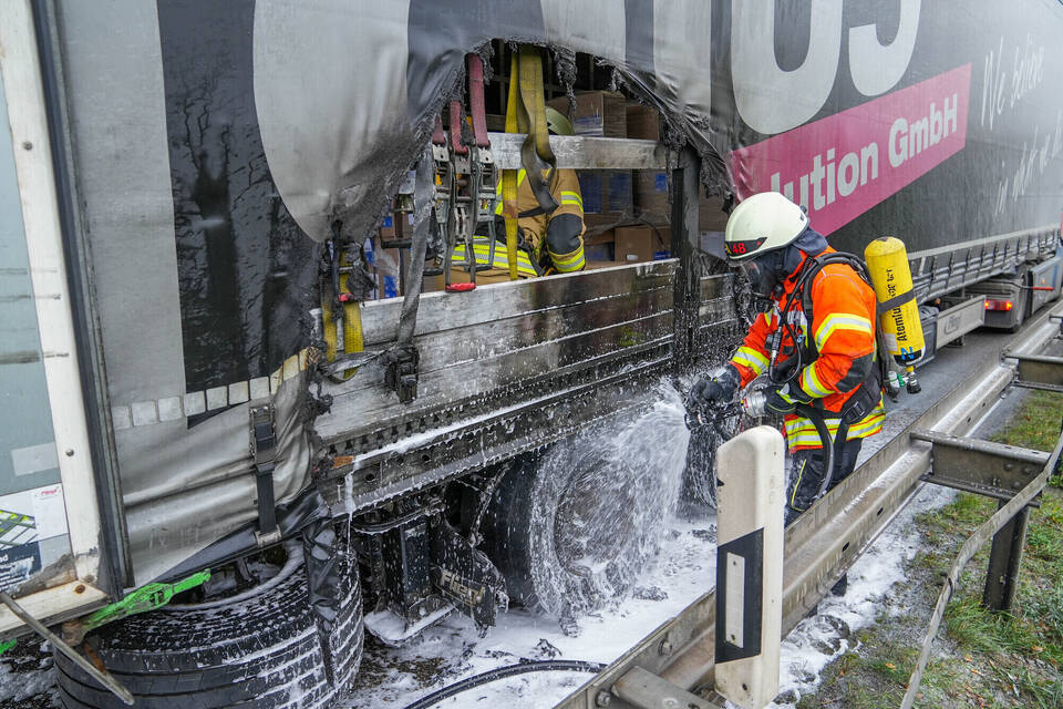 Der Brand wurde rasch gestoppt. Die Ladung, kanisterweise Bremsflüssigkeit, blieb unversehrt. Aktuell sind zwei von drei Spuren gesperrt. Es staut sich kilometerweit zurück.