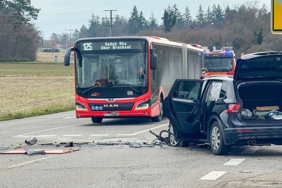 Gegen 12.10 Uhr war ein 27-jähriger VW-Tiguan-Fahrer auf der Landesstraße L555 in Richtung Kirrlach unterwegs. Als ein Linienbus zeitgleich von der Haslacher Straße nach links auf die L555 einbiegen wollte, missachtete dessen Fahrer laut Polizeibericht die Vorfahrt des Tiguan.