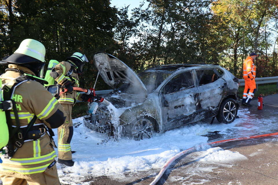 Gegen 13.15 Uhr war ein Nissan Qashqai in Richtung Karlsruhe unterwegs. Kurz vor dem Autobahnkreuz Weinheim quoll plötzlich Rauch aus dem Wagen. Ein anderer Fahrer bemerkte dies und signalisierte dem Nissan-Fahrer, dass er umgehend stoppen sollte.