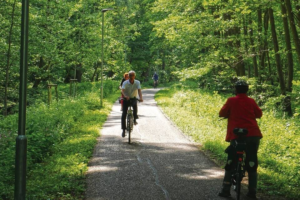 Hinter dem Parkplatz "Am Mühlhölzel" lässt man den Wieslocher Bauhof links liegen und fährt durch die gepflegten Kleingärten der Altwieslocher Bevölkerung. Schon von Weitem sieht man links oben die Abraumhalden des Wieslocher Bergwerks liegen. In der Weinstadt wurde über 2000 Jahre Blei-, Zink- und Silbererz gefördert, der Bergbau-Betrieb wurde erst 1954 endgültig eingestellt. Nach Altwiesloch taucht man ein in das Naturschutzgebiet Fuchswiesen mit seinen Feucht- und Streuobstwiesen, einer artenreichen Tier- und Pflanzenwelt und Bänken, die zu einer kurzen Rast einladen. Der gut ausgebaute Fahrradweg ist, dank der Initiative eines Dielheimer Industriellen, seit einiger Zeit auch nachts beleuchtet.