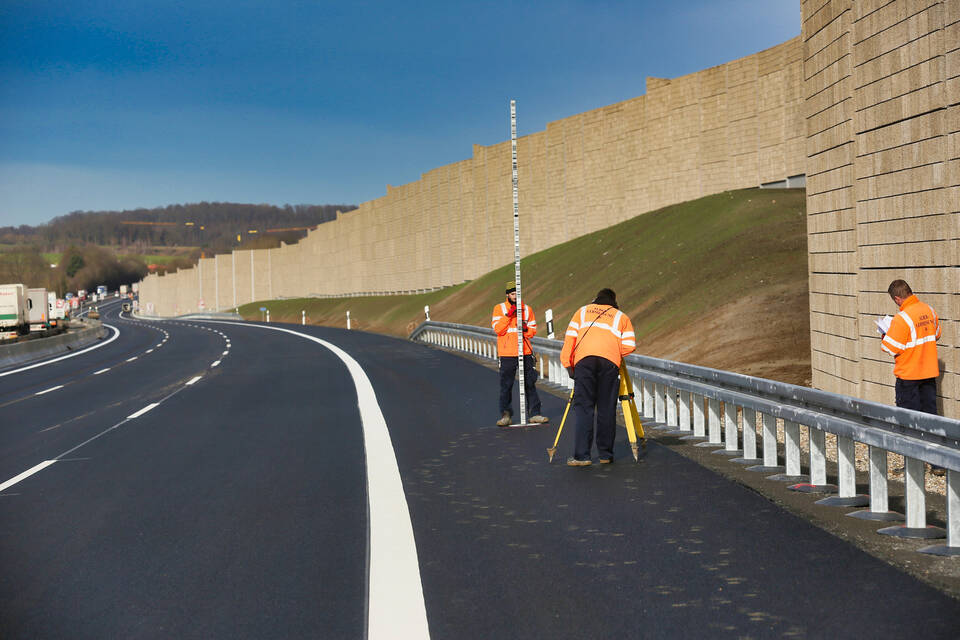 Genauigkeit im Millimeterbereich: Vor der Inbetriebnahme wurden Höhenniveau und Querneigung der Fahrbahn geprüft und protokolliert. Foto: ViA6West