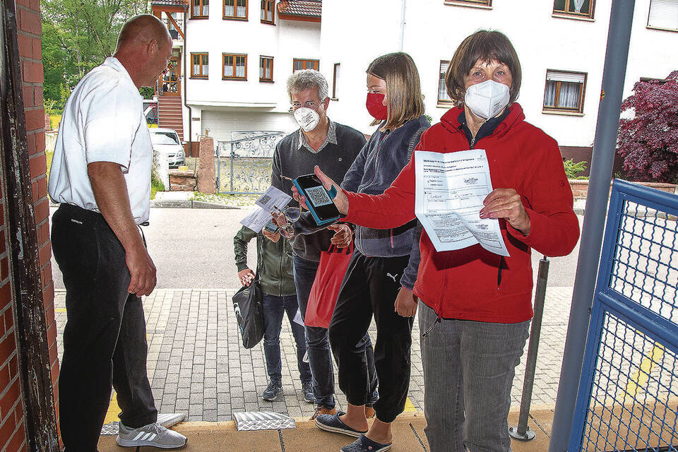 In Bammental begrüßte Schwimmmeister Carsten Kresser die ersten Badegäste, die Nachweise über eine Impfung, eine überstandene Corona-Infektion oder einen tagesaktuellen Schnelltest vorzeigen mussten. Foto: Alex