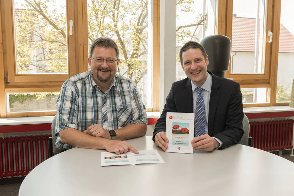 21 Veranstaltungen an den verschiedensten Orten - von der Alten Synagoge bis zur Alten Turnhalle - umfasst das Programm zum Hirschberger Musik- und Kultursommer, das Hauptamtsmitarbeiter Michael Frank (l.) und Bürgermeister Manuel Just vorstellten. Foto: Kreutzer