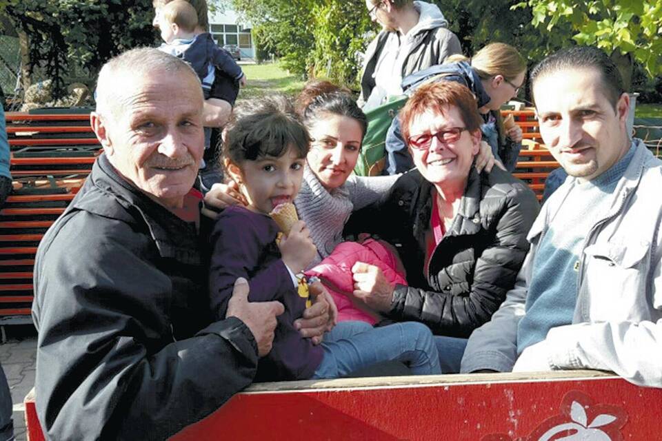 Deutsch-syrisches Familienglück: Jutta (2.v.r.) Neuwirth haben sich einer Flüchtlingsfamilie angenommen. Inzwischen sind die Neuwirths und die Somos ein Stück weit zusammengewachsen. Foto: Kern