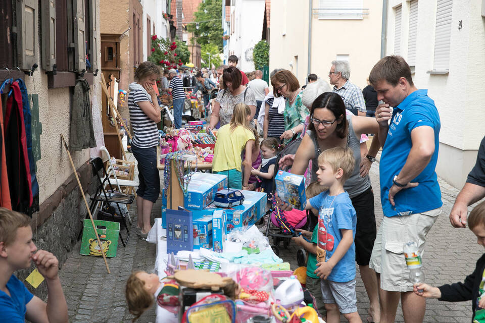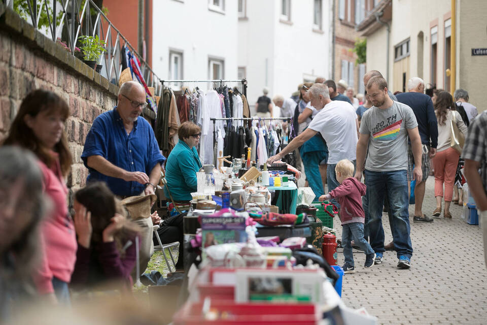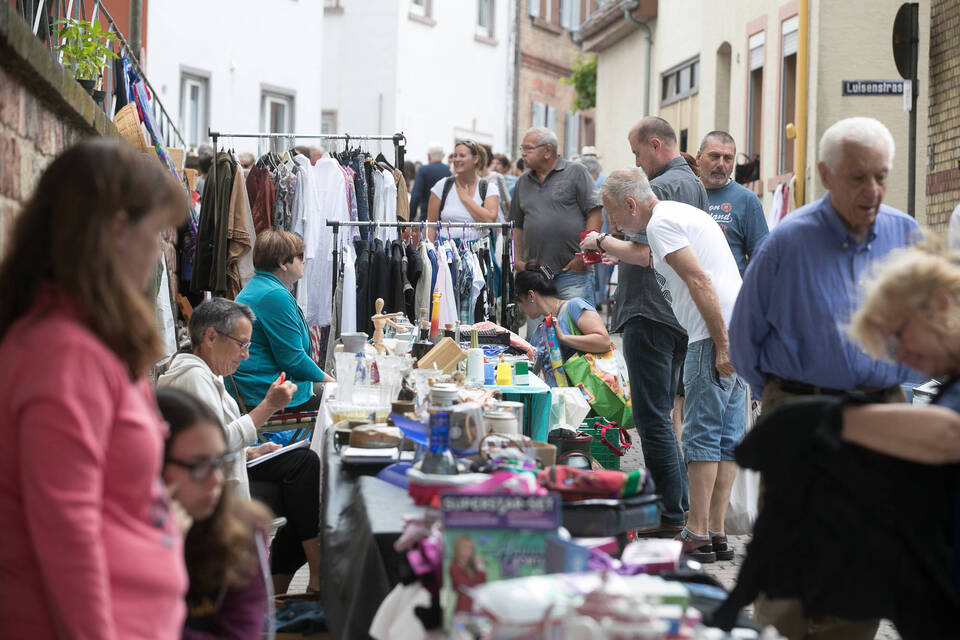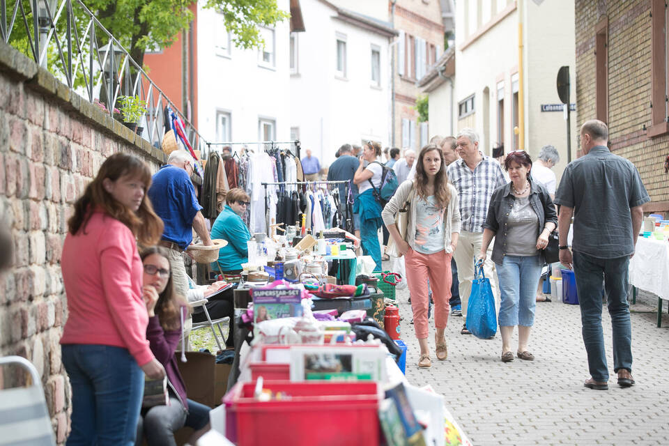 Viel schöner ist’s mit der anschließenden Kerwe, aber auch alleine hat der Flohmarkt in den Gassen des alten Ortskerns nichts von seinem Flair verloren. Bei optimalem Flohmarktwetter drängen sich die Besucher zwischen den 73 Ständen und lassen sich von dem bunten Schnäppchen-Allerlei inspirieren.
