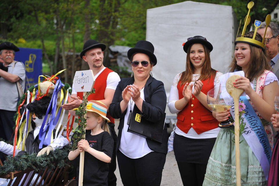 Mit leeren Händen gingen auch die Zuschauer nicht nach Hause: Kress warf Ohrenstöpsel ins Publikum. Einfallsreich waren auch die ehemaligen Kochlöffelköniginnen der vergangenen Jahre. Extra für das Fest hatten sie eine Choreografie einstudiert.