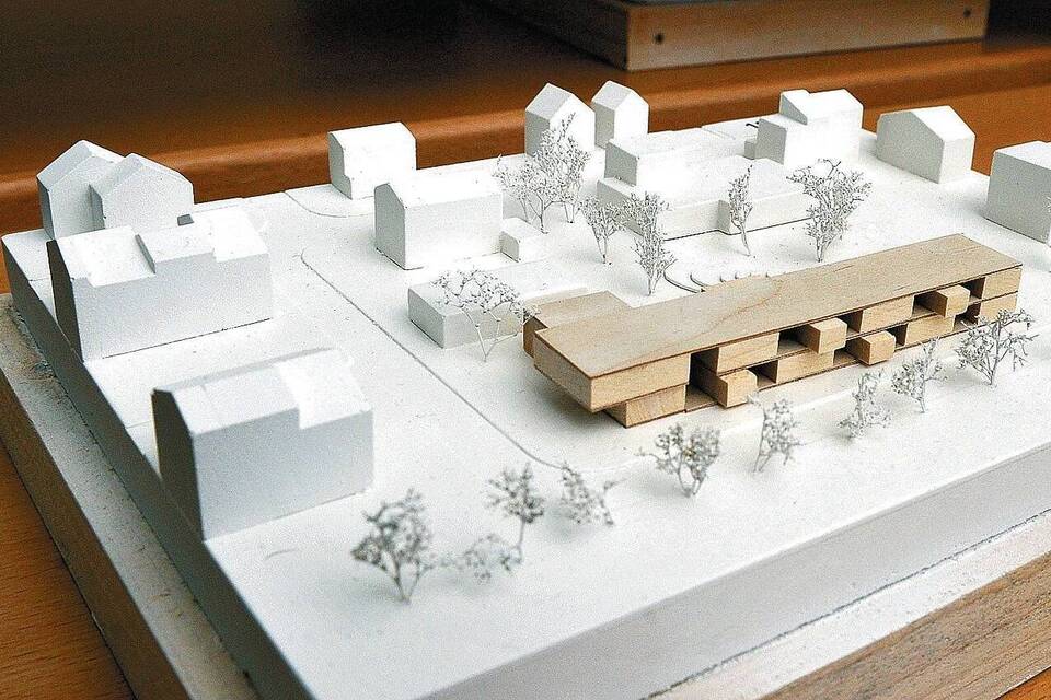 Das Modell des Kindergartens: Deutlich zu erkennen sind die Vor- und Rücksprünge, die das Flachdachgebäude gliedern. Foto: Dorn/Pläne: Lanz + Schwager