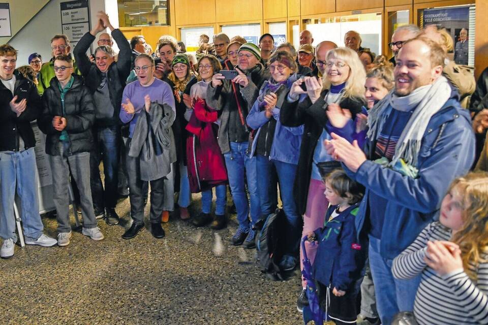 Im Rathaus-Foyer fieberten rund 100 Bürger der Bekanntgabe des Bürgerentscheid-Ergebnisses entgegen. Es gab Lob für die hohe Wahlbeteiligung.