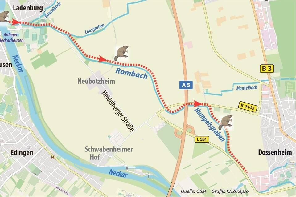 Auf RNZ-Nachfrage erklärt Weinhold, dass die Wanderungen der Biber allgemein "schwer nachzuverfolgen" seien. Schließlich tragen die Tiere keine GPS-Sender und zeigen sich dem Menschen ohnehin eher selten. Zudem herrsche in der Bewegung der Nager eine "unheimliche Dynamik". Zur Biberfrage in Dossenheim und Ladenburg ist sich Weinhold aber sicher: "Die Biber waren zuerst in Ladenburg, von dort ist einer weiter nach Dossenheim gewandert." Bei diesem handelt es sich um Justin.
