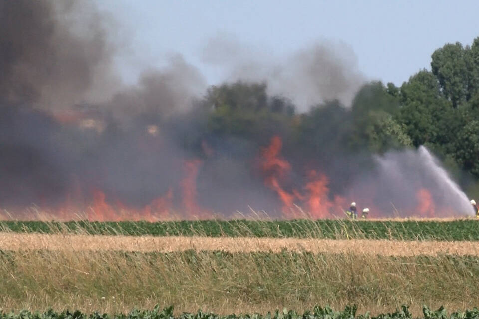 Eppelheim. (pr/jeu) Bei Eppelheim musste die Feuerwehr am Sonntagmittag einen größeren Flächenbrand löschen, der aufgrund der anhaltenden Hitze und Trockenheit ausgebrochen war. Ein Getreidefeld war unweit der A5 in Brand geraten.