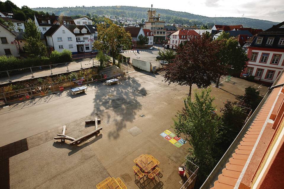 Der Pausenhof der Turmschule: Darunter könnte die neue Tiefgarage entstehen. Der Hof müsste dann neu gestaltet werden. Foto: Alex