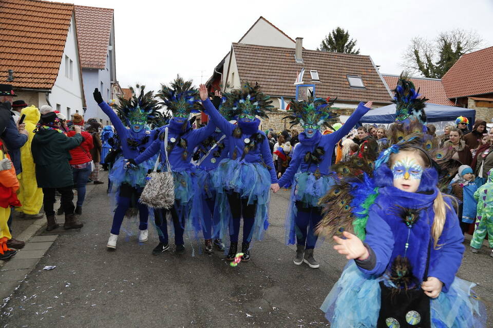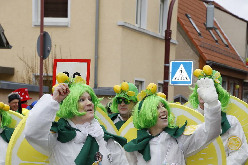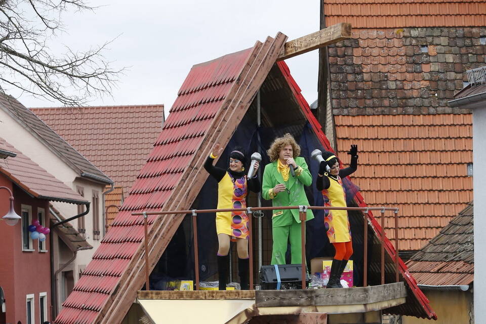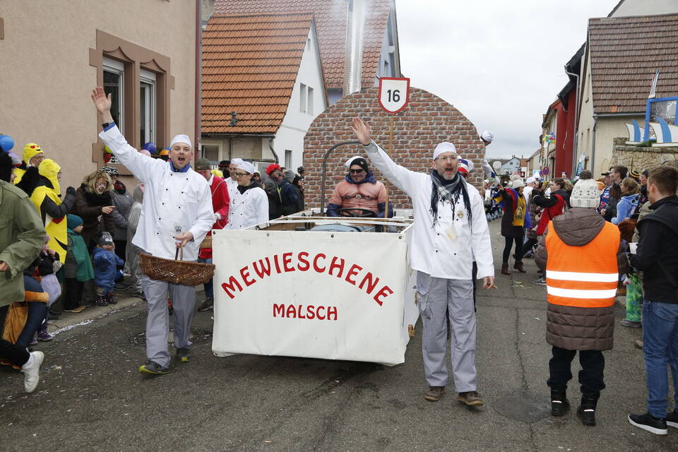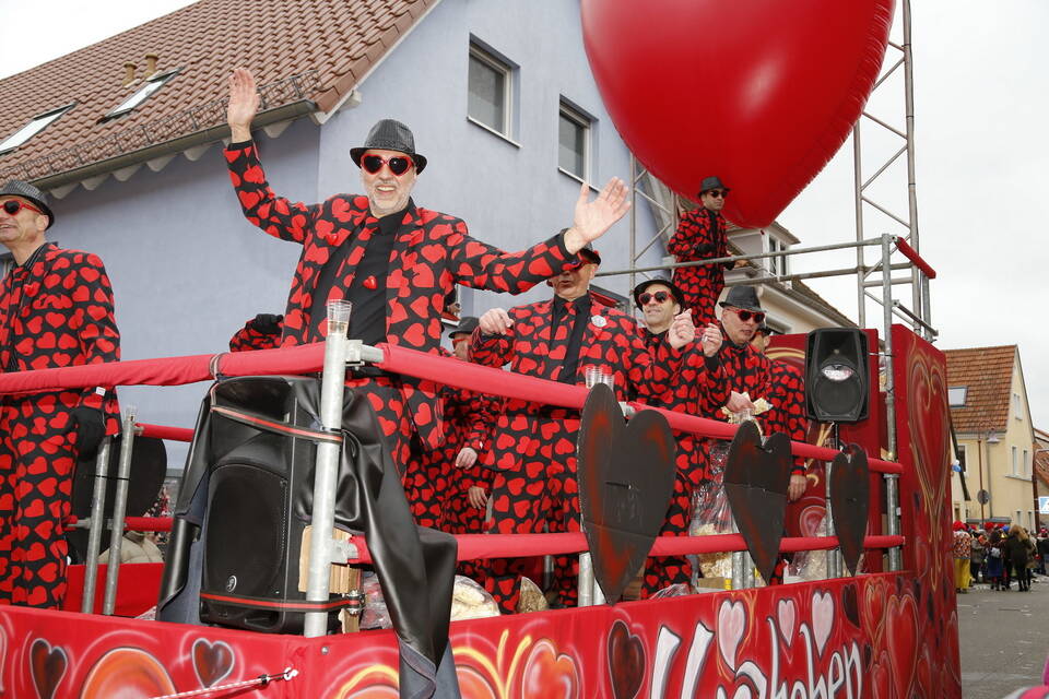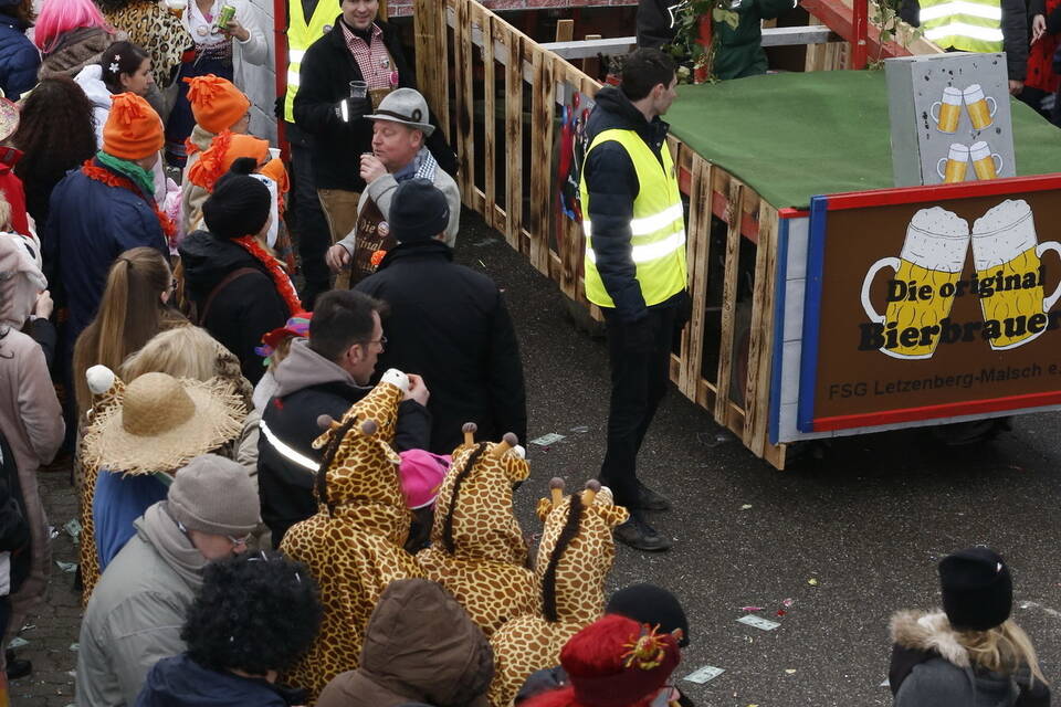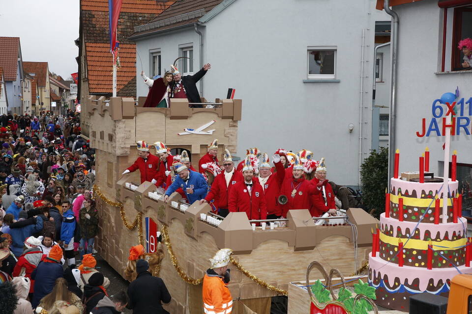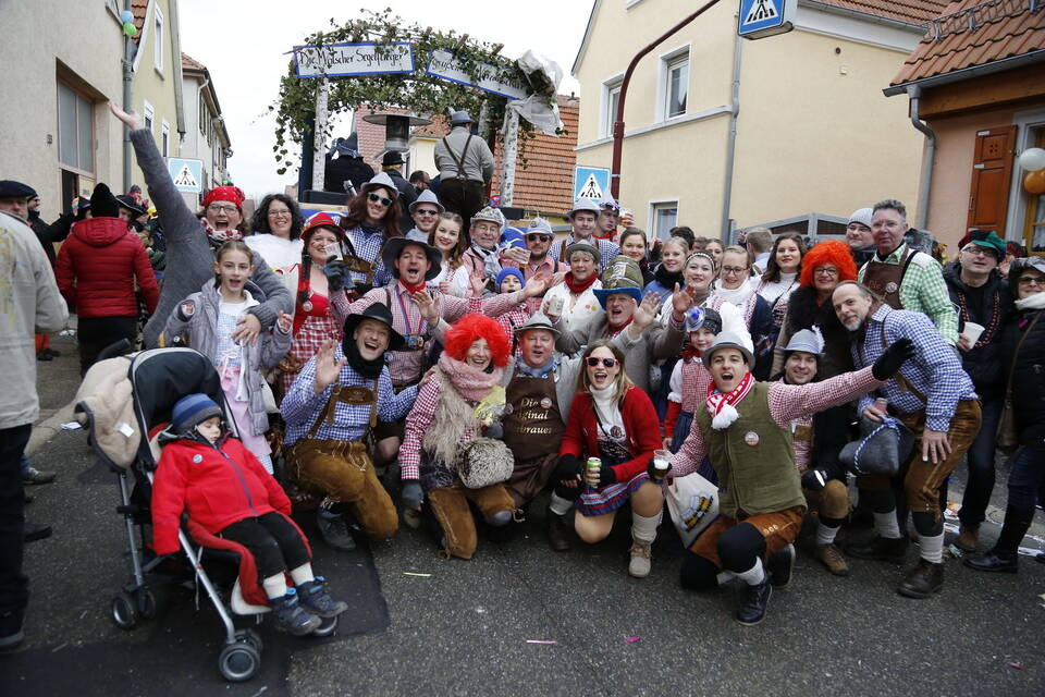 Vorneweg fuhr der Oldtimer mit den Kurpfälzer Weinhoheiten Patricia, Katharina und Mona, am Steuer Kurt Laier, begleitet vom Malscher Urfastnachter Richard Brucker. Zugmarschall Werner Keßler hielt den närrischen Lindwurm zusammen.