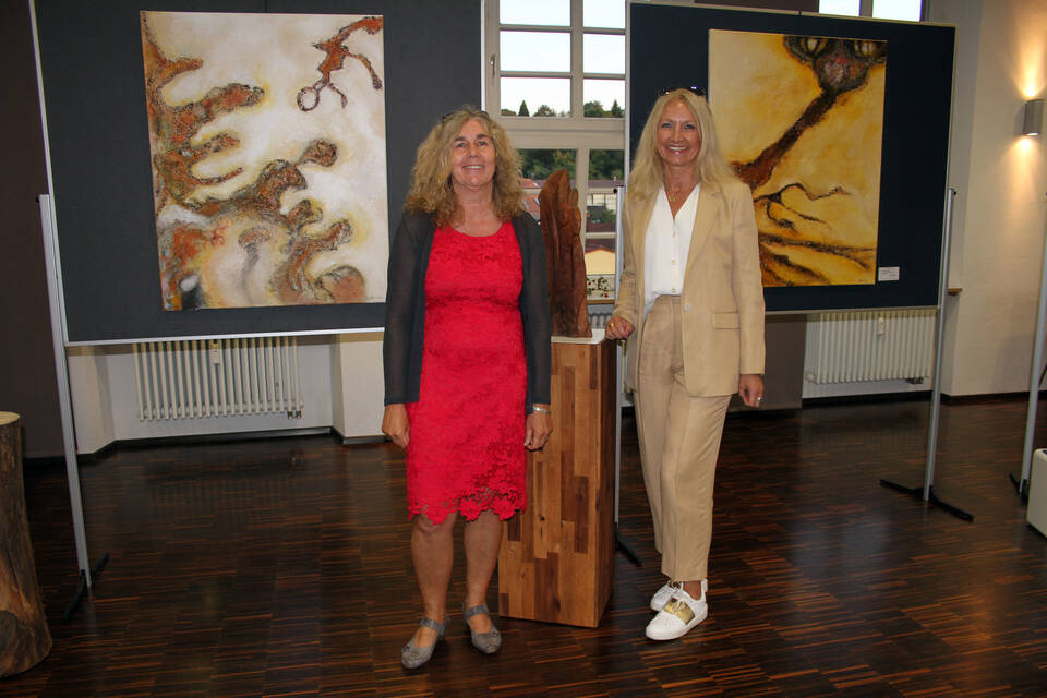 Rosemarie Beigel (li.) und Petra Spannagel stellten im Schloss aus. Foto: A. Dorn