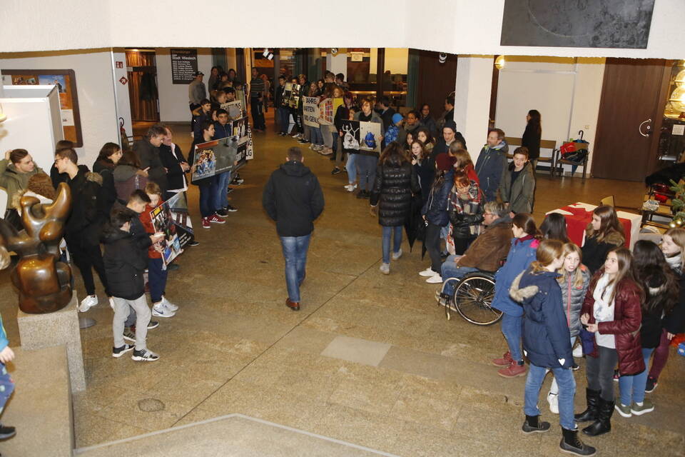 Spalierlaufen zum Gemeinderat: Das Thema "Neubau der Gemeinschaftsschule" bewegt in Wiesloch die Gemüter. Auch Schüler taten ihre Meinung kund. Foto: Pfeifer