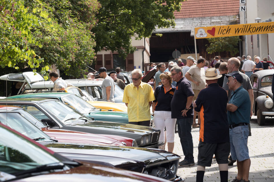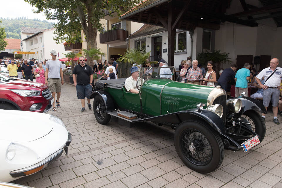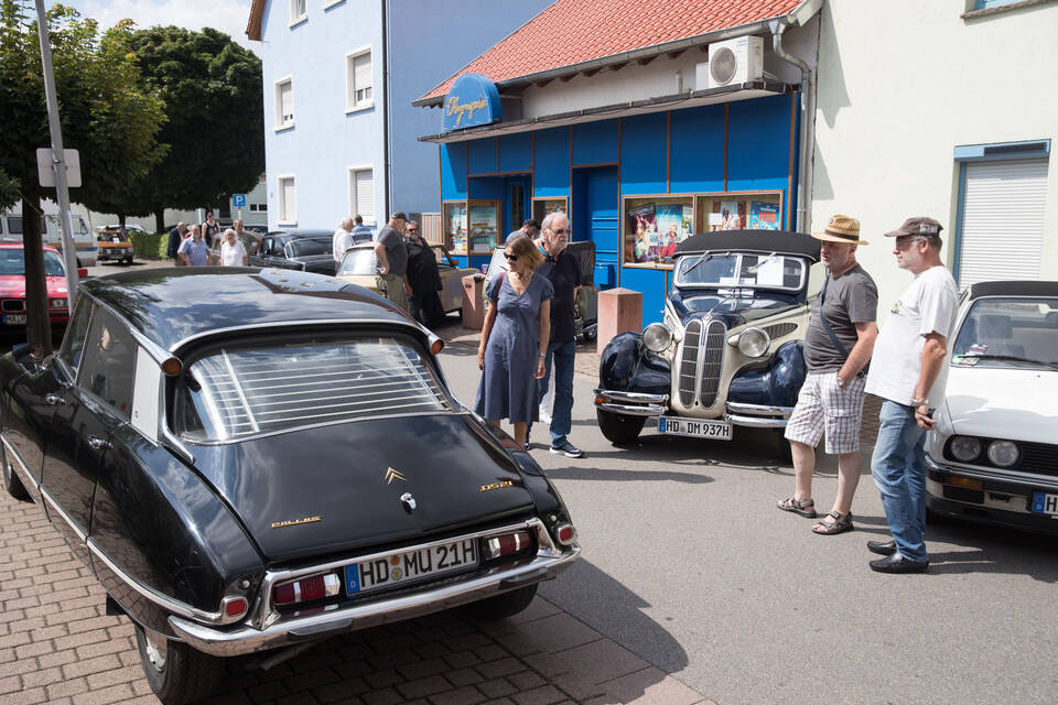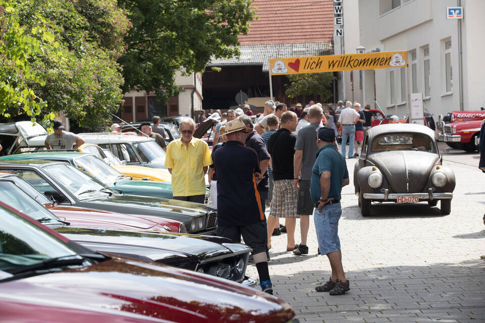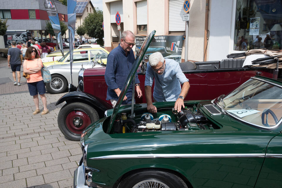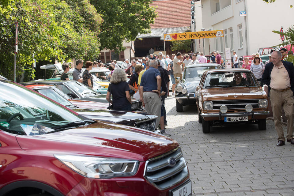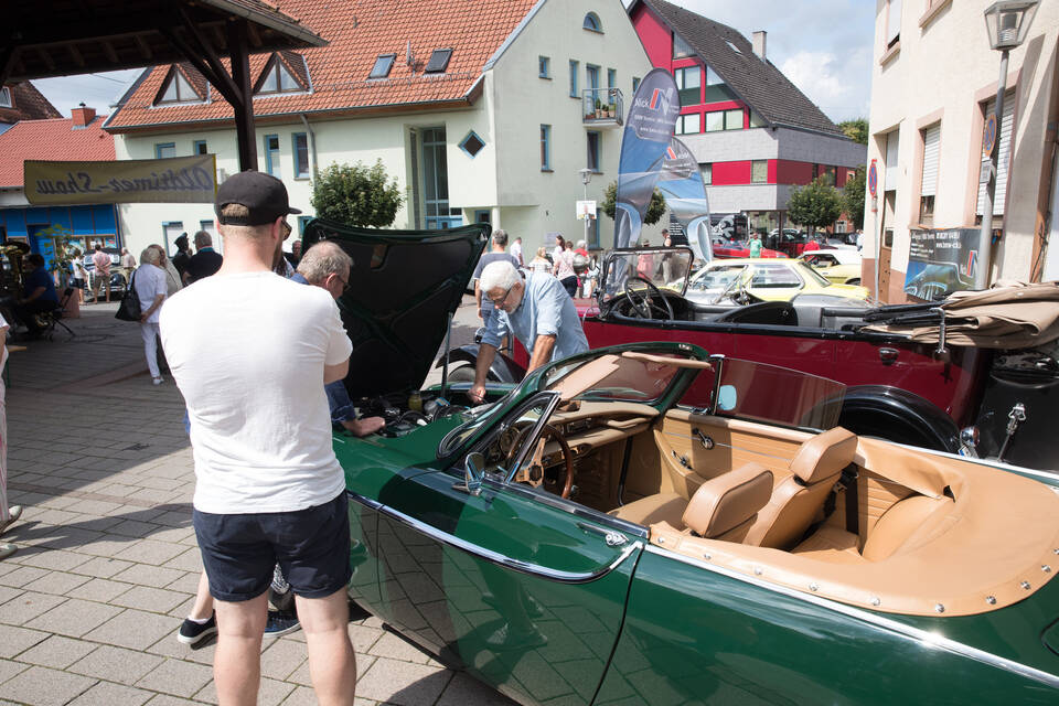 Einen gravierenden Unterschied zu den elf Oldtimershows zuvor gab es allerdings. Denn Hirschbergs ehemaliger Bürgermeister Manuel Just, der heutige Oberbürgermeister von Weinheim, wurde nicht mehr von zu Hause mit einem besonderen Oldtimer abgeholt, um die Show zu eröffnen. "Da wir derzeit keinen Bürgermeister haben", erläuterte der Vorsitzende des Oldtimerclubs, Klaus Peekel, den Gästen und griff selbst zum Mikrofon. "Esst und trinkt, damit die Kasse voll wird", forderte er die zahlreichen Gäste auf. Die ließen sich das nicht zweimal sagen – und so füllten sich die Plätze an den Tischen unter dem Markthallendach rasch.