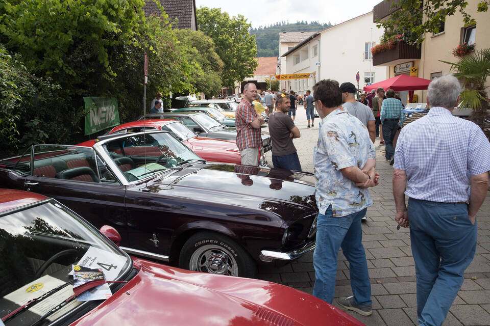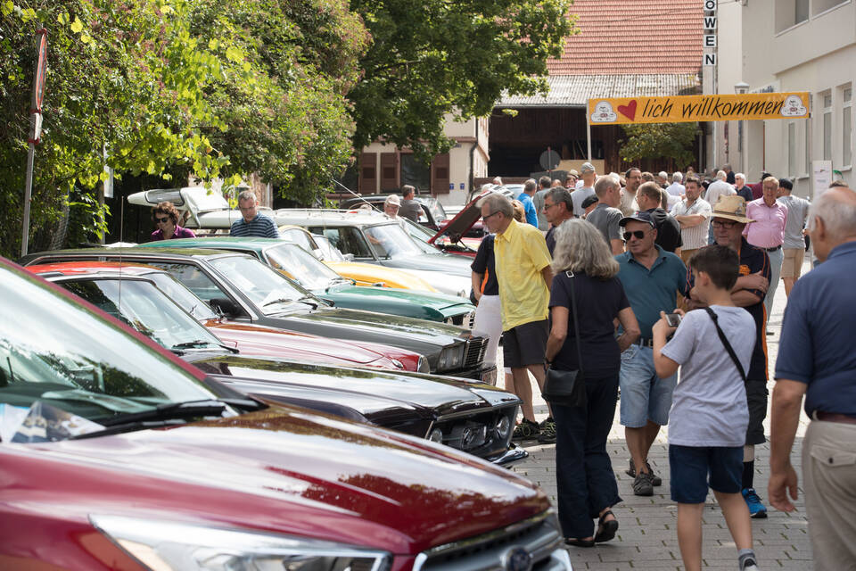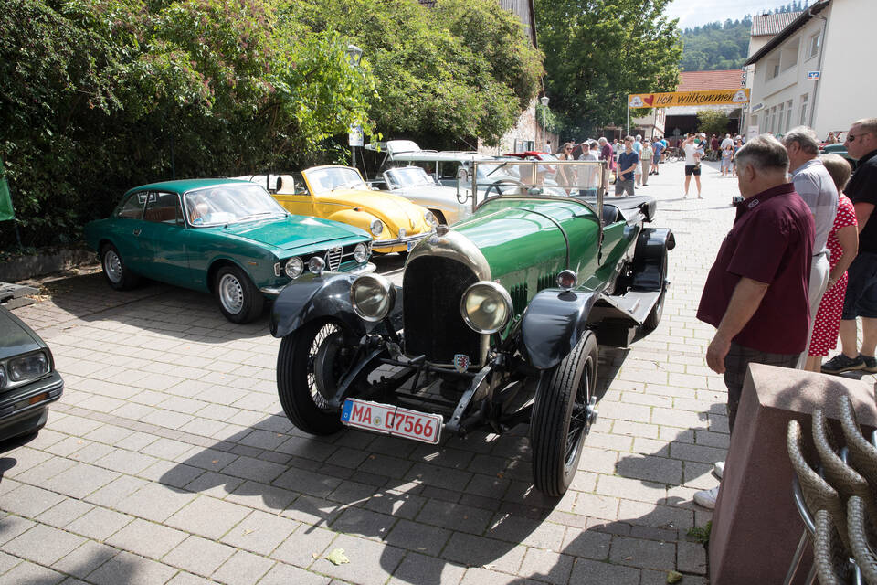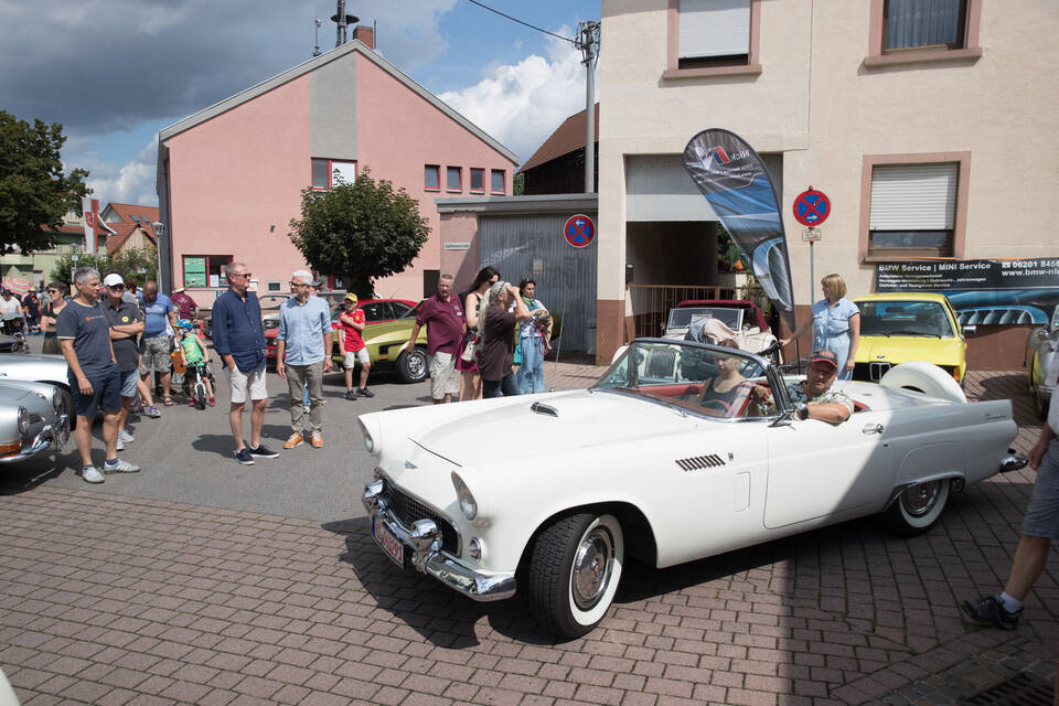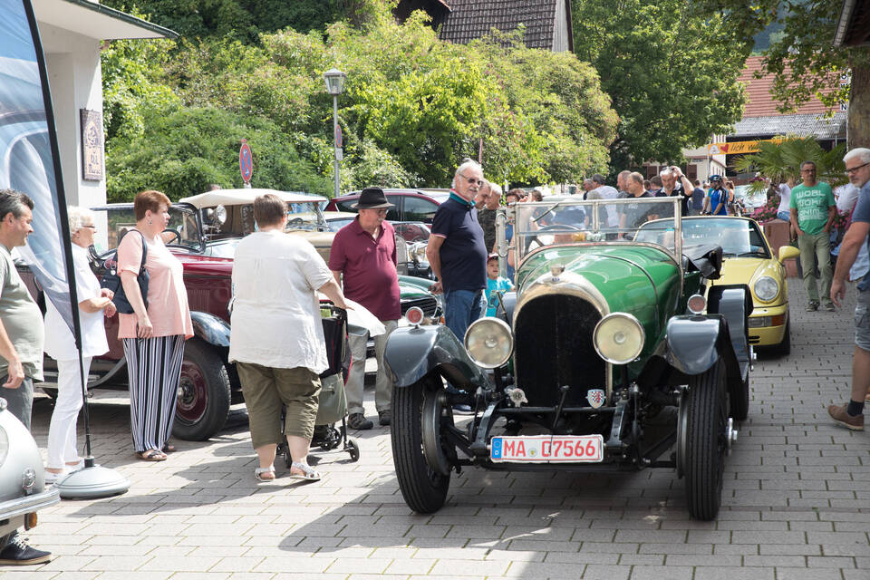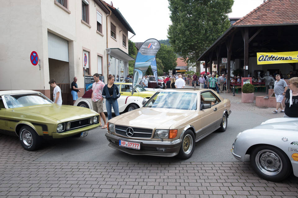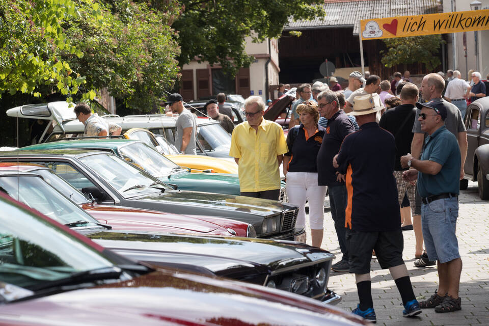 Einen gravierenden Unterschied zu den elf Oldtimershows zuvor gab es allerdings. Denn Hirschbergs ehemaliger Bürgermeister Manuel Just, der heutige Oberbürgermeister von Weinheim, wurde nicht mehr von zu Hause mit einem besonderen Oldtimer abgeholt, um die Show zu eröffnen. "Da wir derzeit keinen Bürgermeister haben", erläuterte der Vorsitzende des Oldtimerclubs, Klaus Peekel, den Gästen und griff selbst zum Mikrofon. "Esst und trinkt, damit die Kasse voll wird", forderte er die zahlreichen Gäste auf. Die ließen sich das nicht zweimal sagen – und so füllten sich die Plätze an den Tischen unter dem Markthallendach rasch.