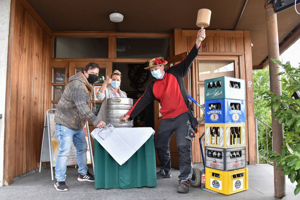 > Auch das Gasthaus "Zur Bergstraße" in Leutershausen öffnet bereits am heutigen Mittwoch wieder. Ein Fass zur Wiedereröffnung ist bereits angeschafft. Gasthaus-Chef Jürgen Drefs zeigt sich "vorsichtig optimistisch". Ob die Menschen zahlreich kommen, zweifelt er aber an; zu schlecht sind die Wetteraussichten für die nächsten Tage und damit auch für ein entspanntes Verweilen im Biergarten. Außerdem glaubt er schon, dass der vorherige Test für den einen oder anderen ein Hemmnis sein könnte. "Aber ich bin eben ein optimistischer Mensch", sagt Drefs, der den Abhol- und Lieferservice beibehalten will.