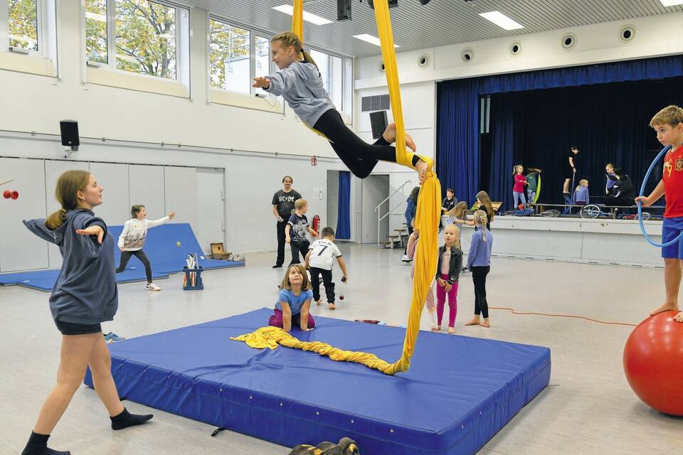 Dann ist wieder Mit-Mach-Zirkus in der Turnhalle Großsachsen. Kinder üben für ihren großen Auftritt am Donnerstag.