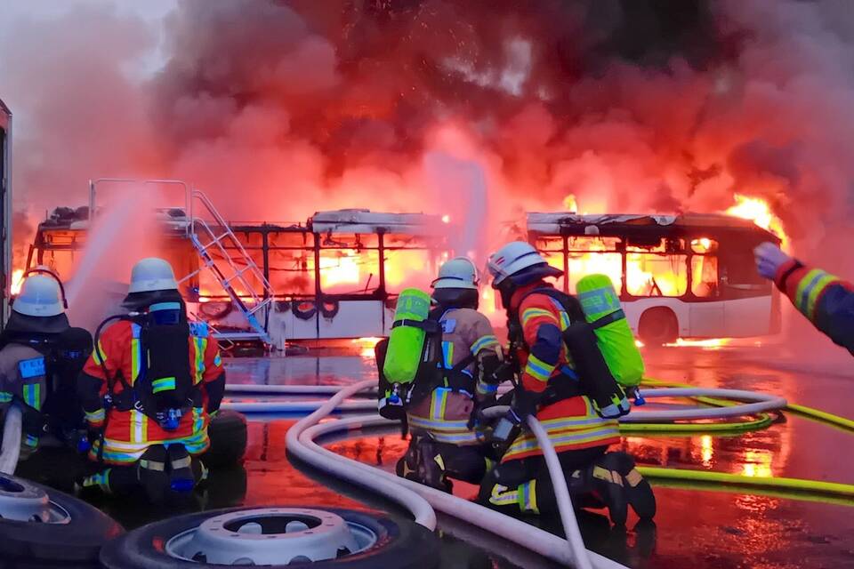 Bei dem Hybridbus musste die Batterie die ganze Nacht gekühlt werden. Das Feuer an sich war schnell gelöscht. Rund 70 Einsatzkräfte waren vor Ort im Einsatz.