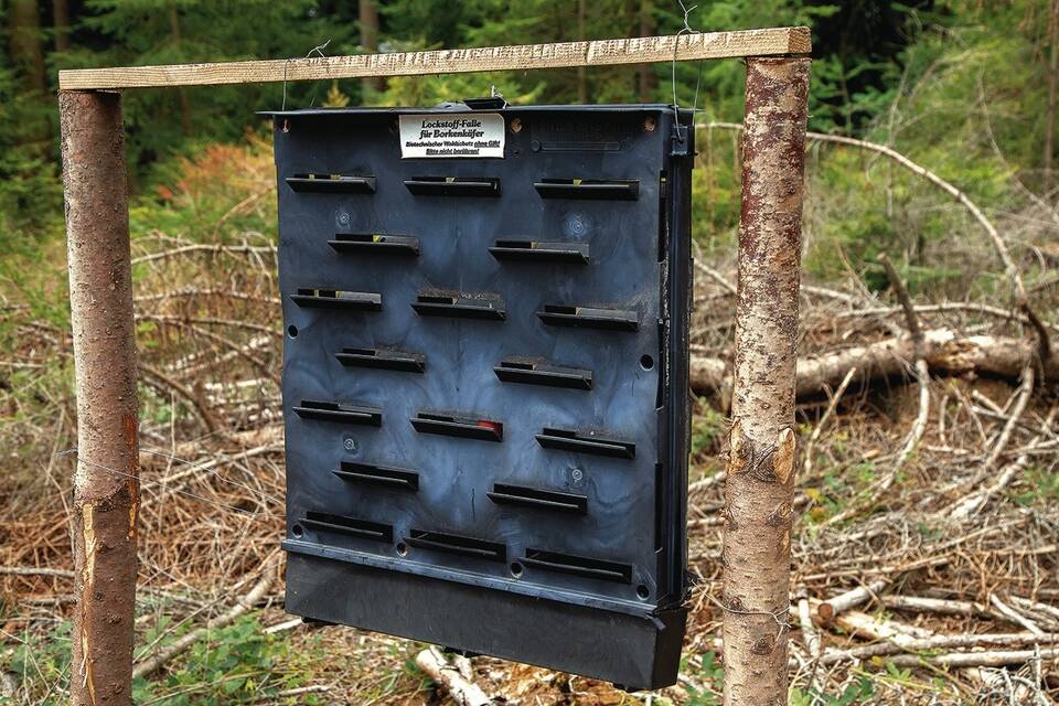 Mit einer solchen Falle werden Borkenkäfer gefangen - allerdings nur ein kleiner Teil. Foto: Alex