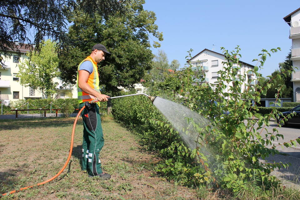 Die Trockenheit mache vor allem den jüngeren Bäumen, deren Wurzelwerk noch nicht so ausgeprägt ist, zu schaffen. "Wir sind seit Wochen täglich mit kleinen Tankwagen im Einsatz, um die Bäume mit dem nötigen Nass zu versorgen", so Singler. Und weiter: "Mittelfristig wird es aber darum gehen, andere, resistentere Arten hier anzupflanzen. Schließlich wollen wir in 20 Jahren ja auch noch Bäume bei uns in der Stadt haben."