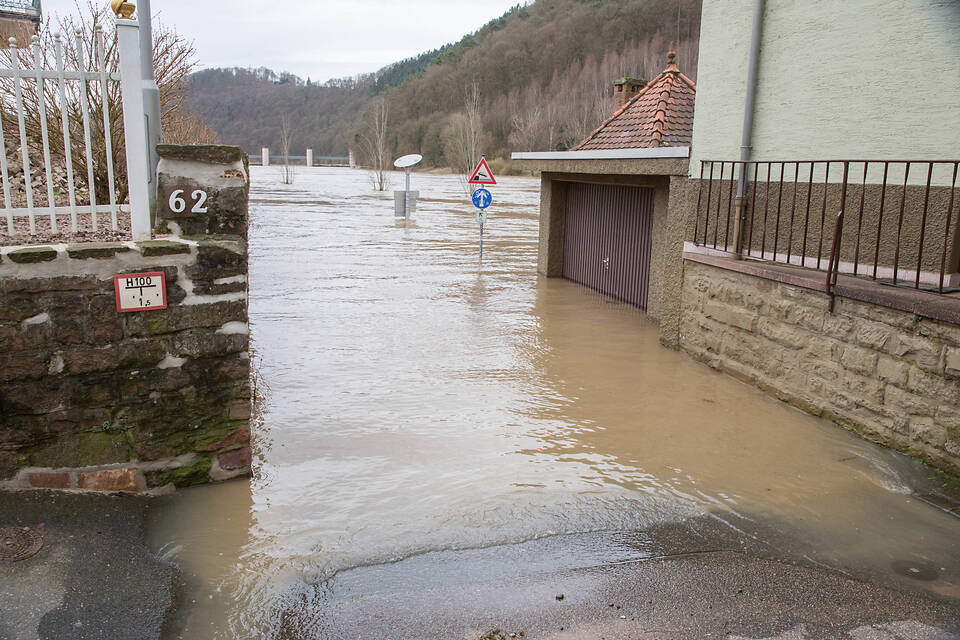 Nervös werden die Bewohner der Neckarstraße in Neckarsteinach erst ab einem Pegel von sieben Metern in Gundelsheim. "Dann läuft es bei uns ins Haus", erzählt Rolf Siegel. Dieses Mal waren es "nur" 6,50 Meter. Am Samstagmittag laufen bereits die Aufräumarbeiten. Während wenige Stunden zuvor noch Teile der Neckarstraße überflutet waren und das Wasser auch in Keller lief, surren jetzt die Pumpen. Rolf Siegel greift derweil zu Schlauch und Besen und reinigt die Garage des Nachbarn. Hier hilft man sich gegenseitig. "Der Schlamm muss schnell weg, sonst wird er hart", sagt Siegel. "So langsam wie dieses Mal ist das Wasser aber noch nie zurückgegangen."
