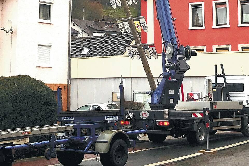 Verschenkt: Schönau verschenkt seinen Zunftbaum, weil der bisherige Standort geräumt werden musste. Er wird in Rauenberg aufgestellt.