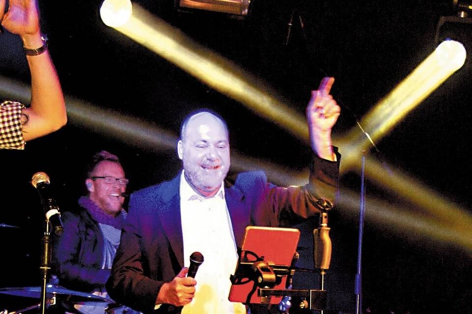 Brillant: Neckargemünds Bürgermeister Frank Volk überrascht beim Bohrermarkt mit einem Auftritt. Er singt "Verdamp lang her" von BAP.