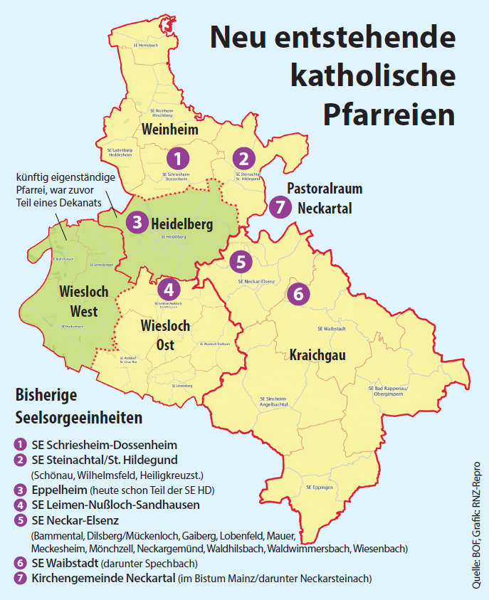 Region Heidelberg. Die Aufgabe ist klar: Aus 1010 Pfarreien in 224 Seelsorgeeinheiten sollen in der katholischen Erzdiözese Freiburg ab 2026 nur noch 36