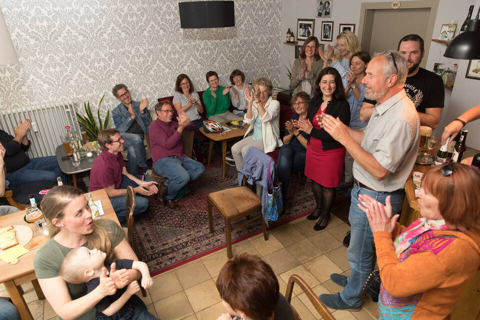 Freude über den neunten Sitz: Die Grüne Liste feierte am Montagabend im "HandWerk" ein weiteres Rekordergebnis. Foto: Kreutzer