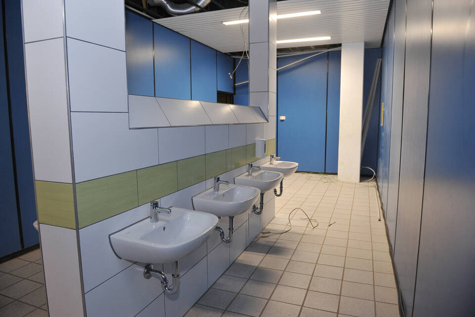 In Letzterer werden derzeit Jungen- und Mädchentoiletten im Erdgeschoss erneuert. Das Verlegen der Fliesen übernehmen dabei zwei Mitarbeiter des städtischen Bauhofs, die Sanitärarbeiten werden von einer Fremdfirma erledigt. Vor dem vergangenen Schuljahr waren in der Kurpfalz-Realschule bereits die Lehrertoiletten renoviert worden.
