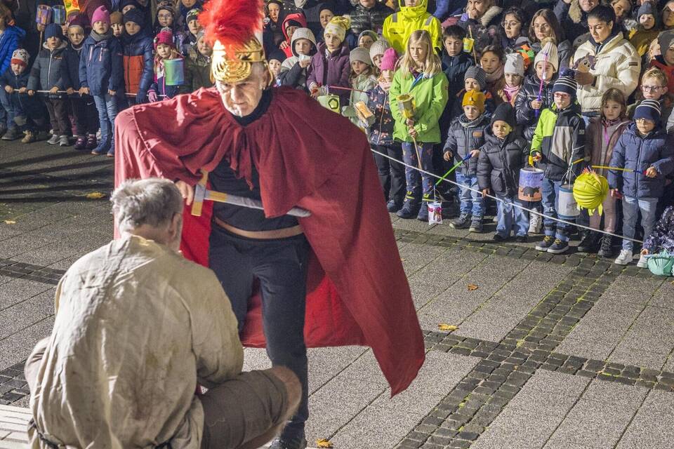 > In der Kernstadt findet der Martinszug diesmal mit Abstand zum Bohrermarkt am Montag, 17. November, statt. Anders als im Vorjahr ist der Zugweg wieder in die klassische Richtung gedreht: Mit Start unter der Friedensbrücke geht es durch die Altstadt zum Menzerpark, wo die Martinsgeschichte zelebriert wird.