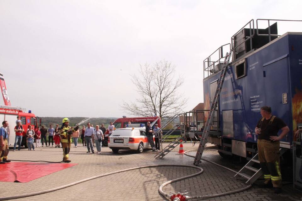 Am Informationstag wurde den Besuchern viel geboten. Besonders interessant natürlich die mobile Brandübungsanlage, in der die Malscher Einsatzkräfte und auch Feuerwehren aus der Region zuvor schon verschiedene Einsatz-Szenarien geübt hatten. Verschiedene Brände wurden simuliert, darunter ein Dach- und ein Treppenhausbrand, die jeweils mit unterschiedlichen Herangehensweisen fachmännisch gelöscht werden mussten.