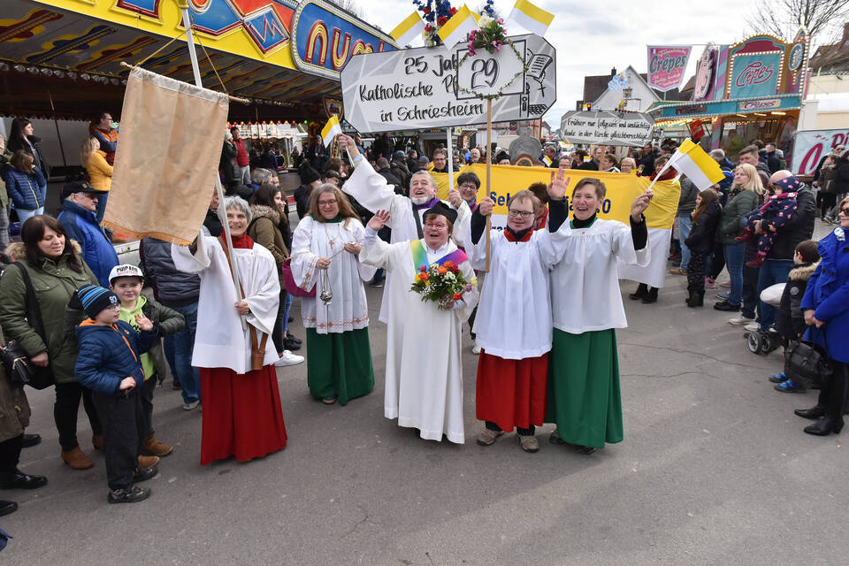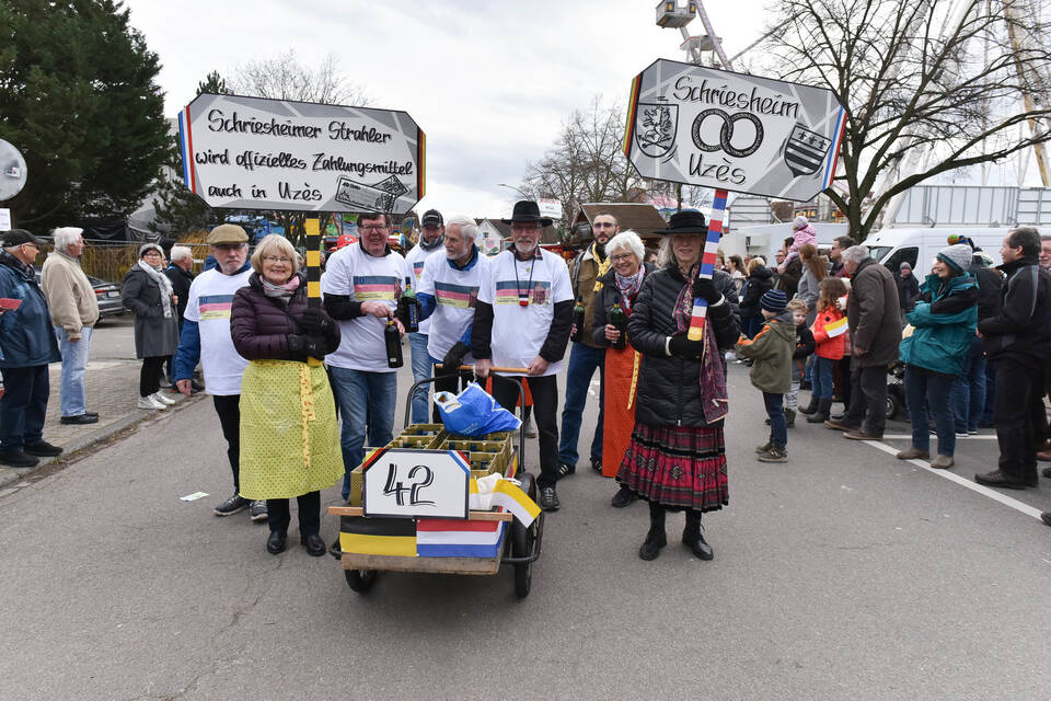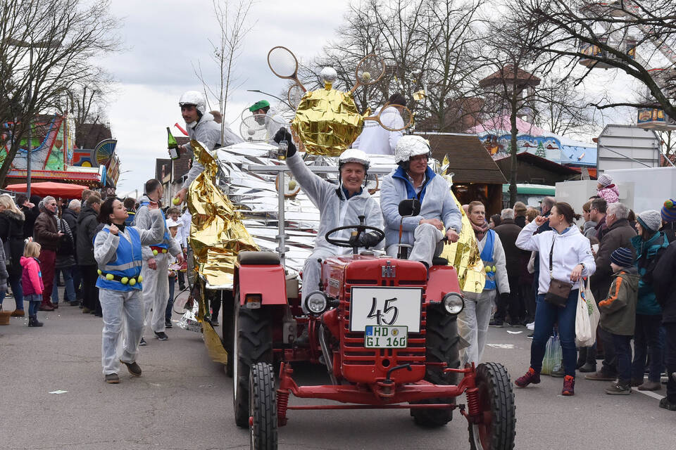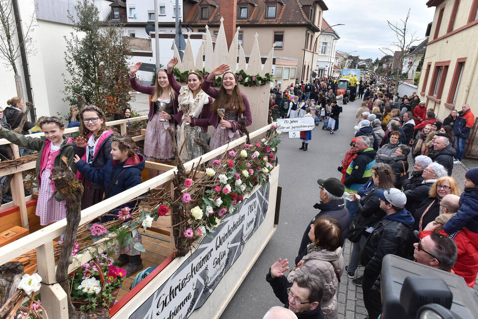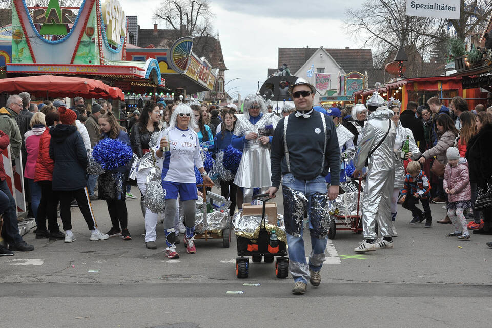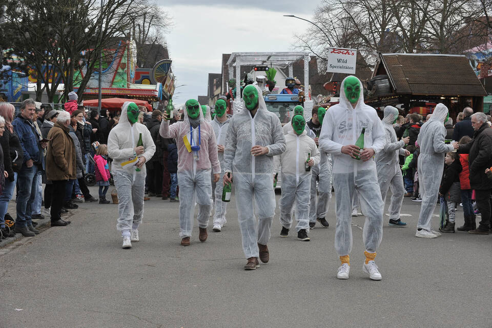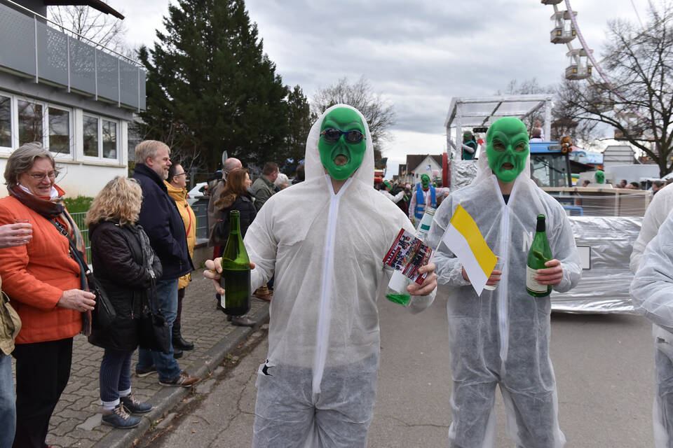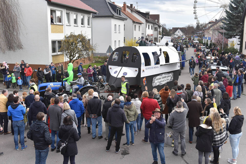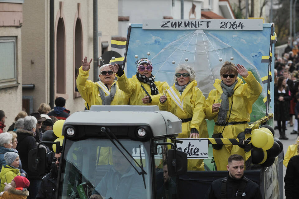 Schriesheim. Raumschiffe, Seilbahn-Verbindungen und eine Glaskuppel für die Strahlenburg: Unter dem Motto "Schriesheim im Jubiläumsjahr 2064" sind am Sonntagnachmittag 48 Fußgruppen und Vereinswagen durch die Schriesheimer Kernstadt gezogen – gesäumt von zahlreichen Zuschauern, trotz der Debatte um Großveranstaltungen wegen des neuartigen Coronavirus. Dabei widmeten sich die Teilnehmer humorvoll Zukunftsthemen wie dem Klimawandel, Überalterung oder Digitalisierung.