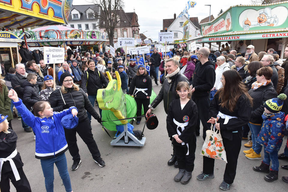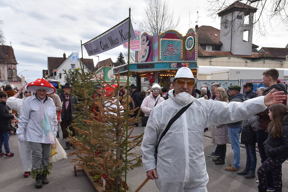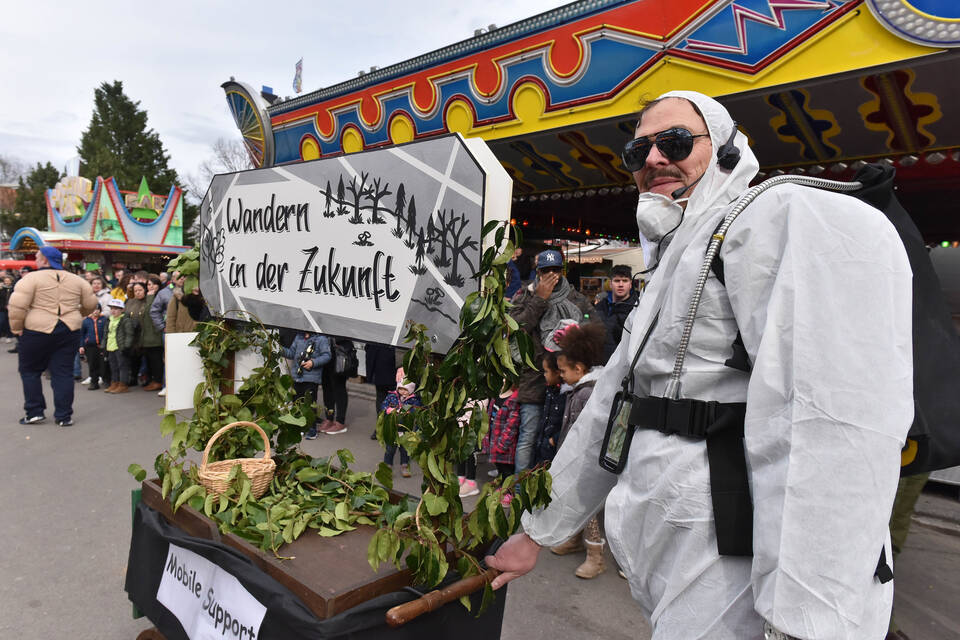 Der Odenwaldklub machte sich dagegen Sorgen, bis 2064 zum "Ohne-Wald-Klub" zu werden – auch wenn ein kleiner "Hoffnungswagen" mit grünen Nadelbäumen zum Festzug-Beitrag gehörte. Besonders optimistisch präsentierte sich der Verein der Hundefreunde, der im vergangenen Jahr nach einer sturmbedingten Festzug-Verlegung und eines Parallelwettkampfs gefehlt hatte: mit der ersten "Schlittenhundefahrt" von Altenbach nach Wilhelmsfeld.