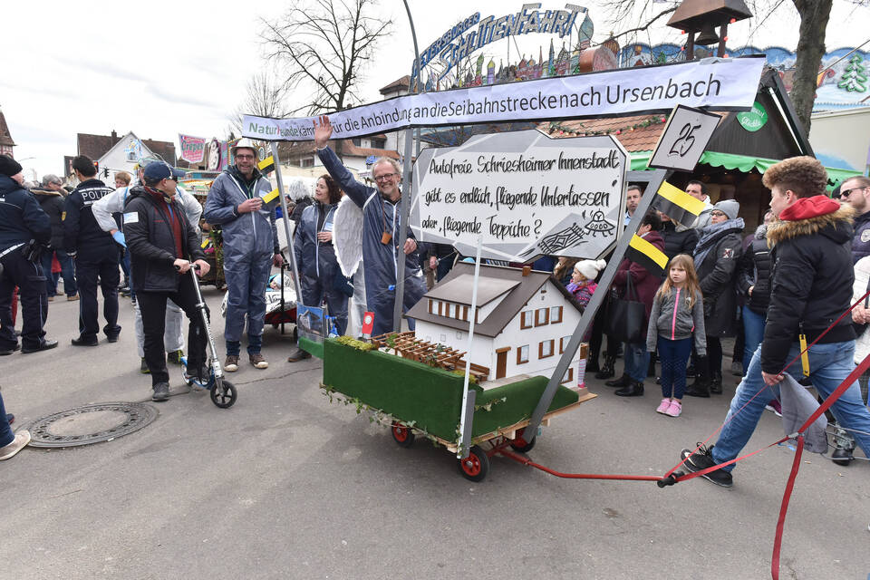 Ganz so große Hoffnungen wollte der Sängerchor Ursenbach dagegen nicht in die Digitalisierung setzen. Stattdessen warb die Fußgruppe für "schnelles Seilbahn-Net", das CO2-neutral mit Windrädern betrieben werden könne, wie Hannelore Bretschi erklärte. Allerdings sind dafür dann Messengerdienste wie "Wart’s abb" nötig.
